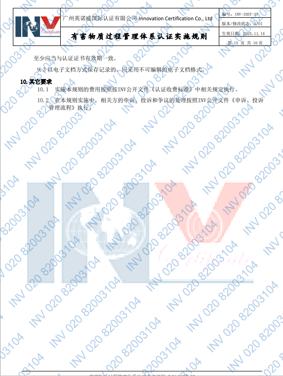 电子文档认证规则全文,可致电020-82003104或发送邮件至 iso@invcert.com获取。