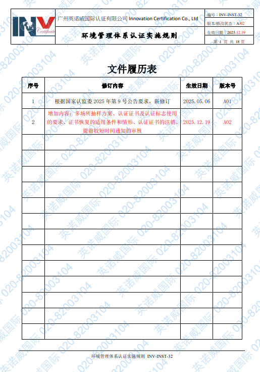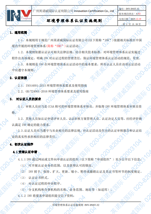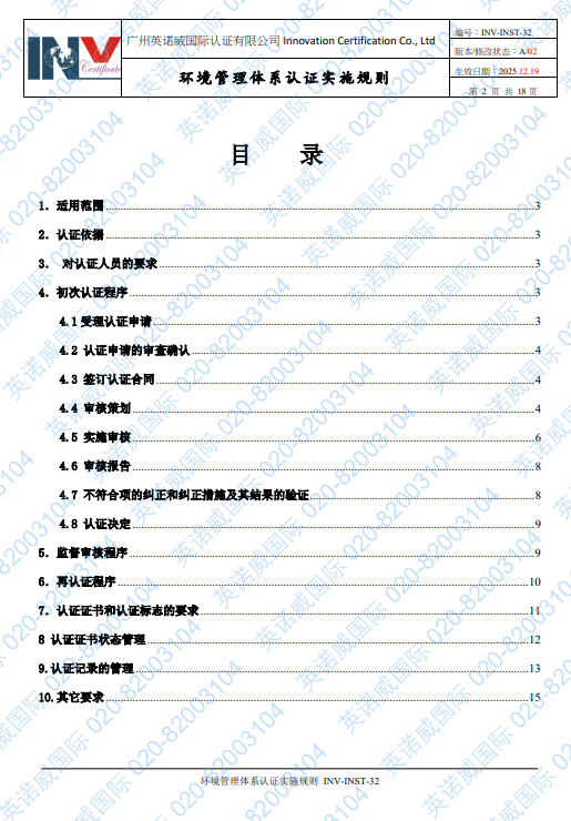 认证规则电子档全文,请致电020-82003104或发邮件iso@invcert.com至INV技术部获取.
