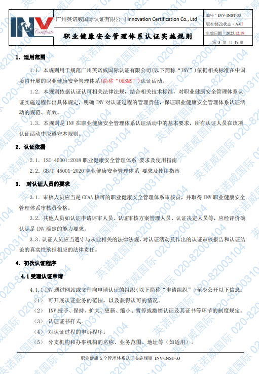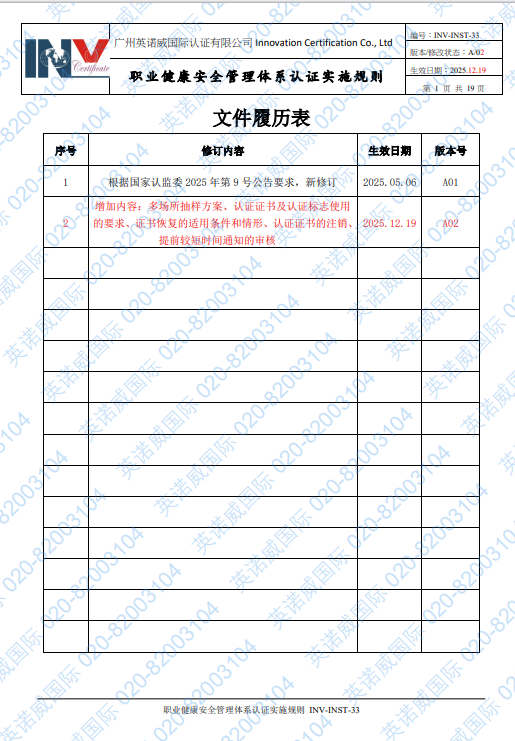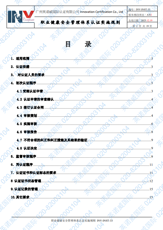 认证规则电子档全文,请致电020-82003104或发邮件iso@invcert.com至INV技术部获取.